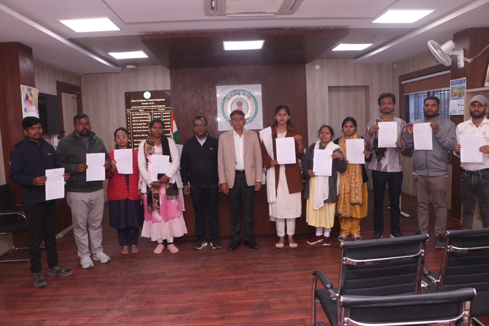चयनित अभ्यर्थियों को डिप्टी कलेक्टर श्री रमेश मोर, डिप्टी कलेक्टर श्री सुनील अग्रवाल तथा भू-अधीक्षक श्रीमती भूपेंद्र बंजारे की उपस्थिति में नियुक्ति पत्र प्रदान किए गए। इस दौरान अभ्यर्थियों को प्रशासनिक दायित्वों के प्रति सजग रहते हुए कार्य करने की समझाइश भी दी गई।