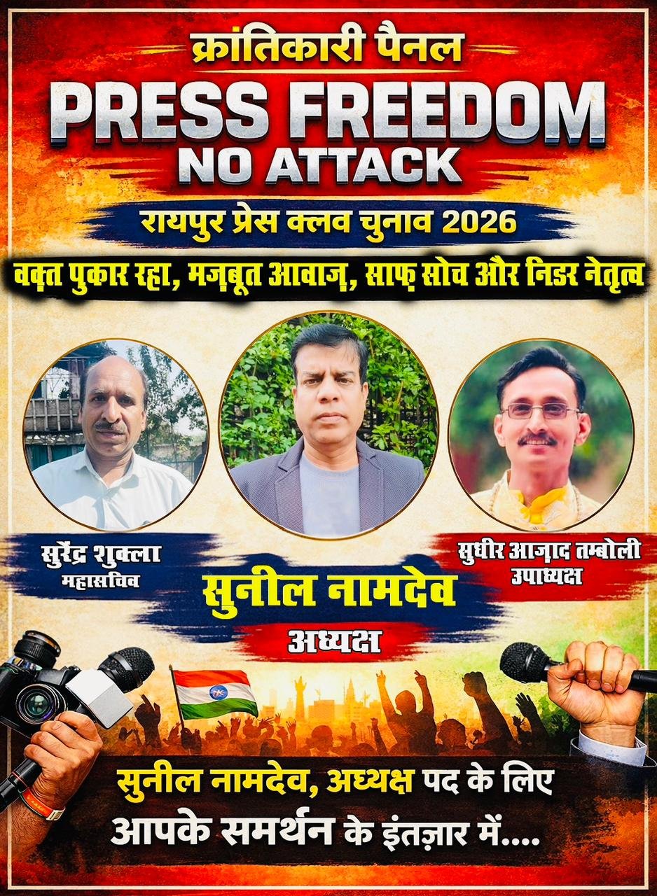 “हम साथ–साथ” के नारे के साथ उतरा क्रांतिकारी पैनल मौजूदा व्यवस्था को सीधी चुनौती दे रहा है—अब फैसला रायपुर के पत्रकार करेंगे।