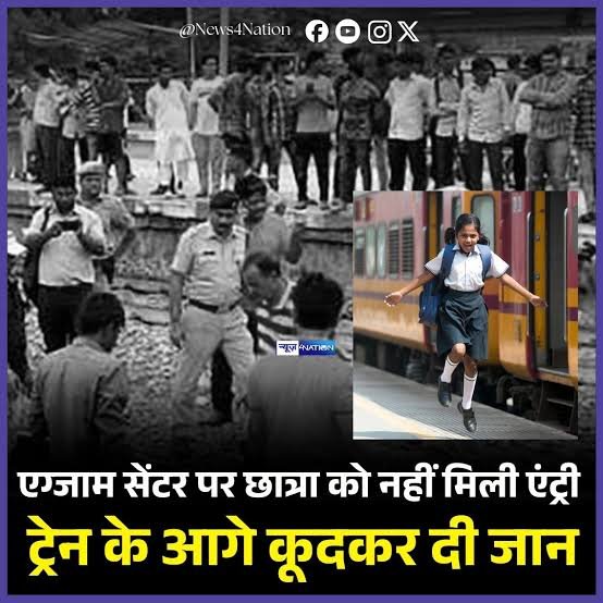 बिहार की धरती से एक ऐसी दर्दनाक ख़बर सामने आई है, जिसने पूरे देश की अंतरात्मा को झकझोर दिया है। दसवीं (मैट्रिक) की परीक्षा देने जा रही एक मासूम छात्रा — कोमल कुमारी — को मात्र कुछ मिनट देरी से पहुंचने के कारण परीक्षा केंद्र में प्रवेश नहीं दिया गया। अपमान, निराशा और टूटे सपनों का बोझ इतना भारी पड़ा कि उसने चलती ट्रेन के सामने कूदकर अपनी जीवनलीला समाप्त कर ली। यह घटना पटना ज़िले के मसौढ़ी क्षेत्र की बताई जा रही है, जहां परीक्षा सुबह 9 बजे शुरू होनी थी। छात्रा लगभग 9 बजकर 10–15 मिनट पर केंद्र पहुंची। गेट बंद हो चुका था। गुहार लगाई गई, लेकिन नियमों की दीवार इंसानियत से ऊंची साबित हुई। कुछ ही घंटों बाद वही बच्ची, जिसके हाथ में एडमिट कार्ड और आंखों में भविष्य के सपने थे, नादौल स्टेशन के पास ट्रेन से कूद गई।